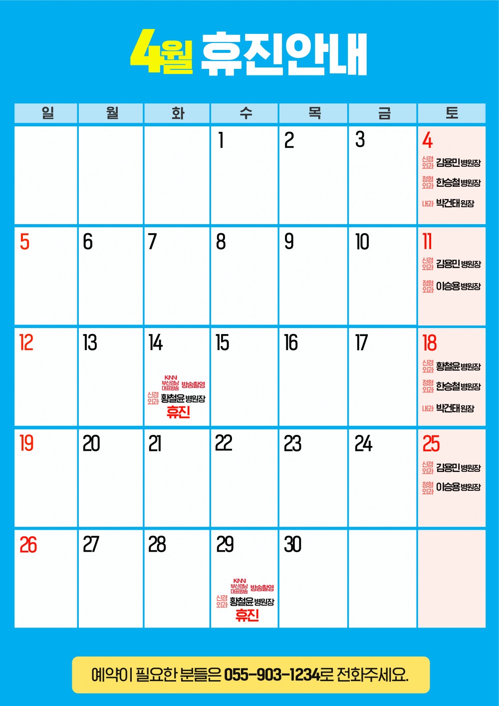 [휴진안내] 김해바른병원 4월 휴진 안내