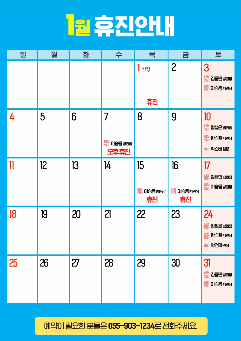 김해바른병원 2026년 1월 휴진 안내드립니다.